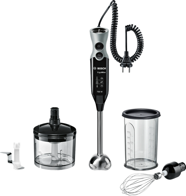 اختبر الخلط الفعال مع بوش MS6CA4150، بمحرك 800 واط، تصميم مريح، وإكسسوارات متعددة الاستخدامات.