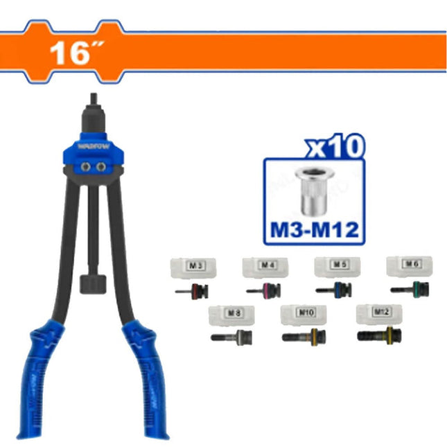 مسدس برشام يدوي متين 17" بمقبض مريح، يدعم أحجام برشام متعددة.