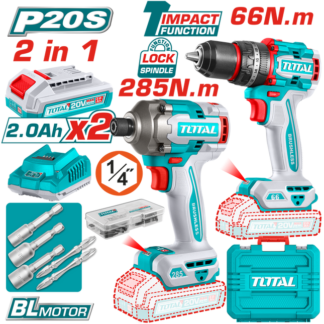 Total Tools TOSLI240968 Li-ion 2 Pcs Combo Kit