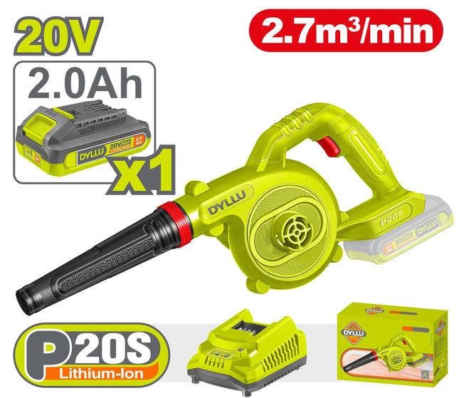 منفاخ لي أيون 20 فولت فعال بحجم هواء 2.7 متر مكعب/دقيقة، خفيف الوزن وسهل الاستخدام.