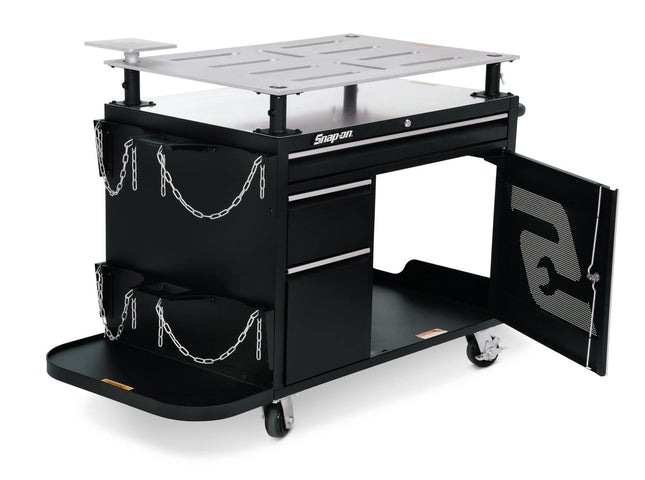 عربة لحام متينة مع مساحة تخزين وعمل واسعة.