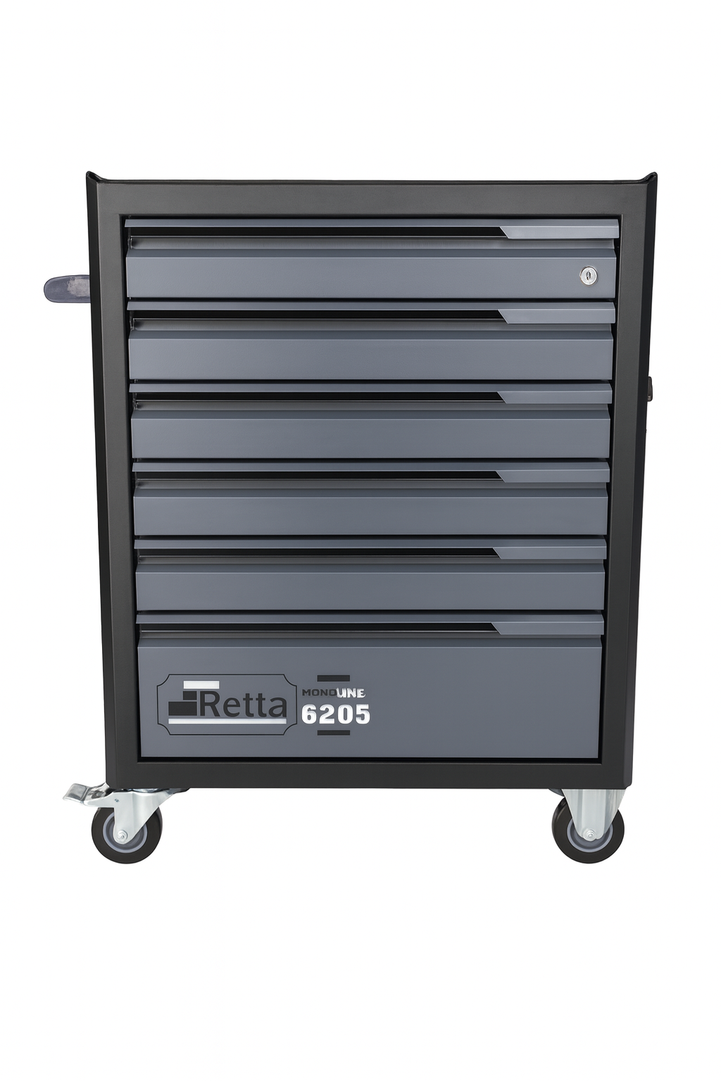The Retta Monoline 245 Piece Tool Trolley RTA6205 is a professional-grade tool storage solution that comes fully equipped with a comprehensive set of 245 tools. The trolley is built with six drawers, each filled with essential tools for various industrial, automotive, and general repair tasks. The drawers include sets such as fork wrenches, socket sets, pliers, screwdrivers, and hammers, all made from durable, high-quality materials to ensure longevity. The robust steel frame and smooth-rolling wheels make it easy to transport the trolley in workshops or garages.