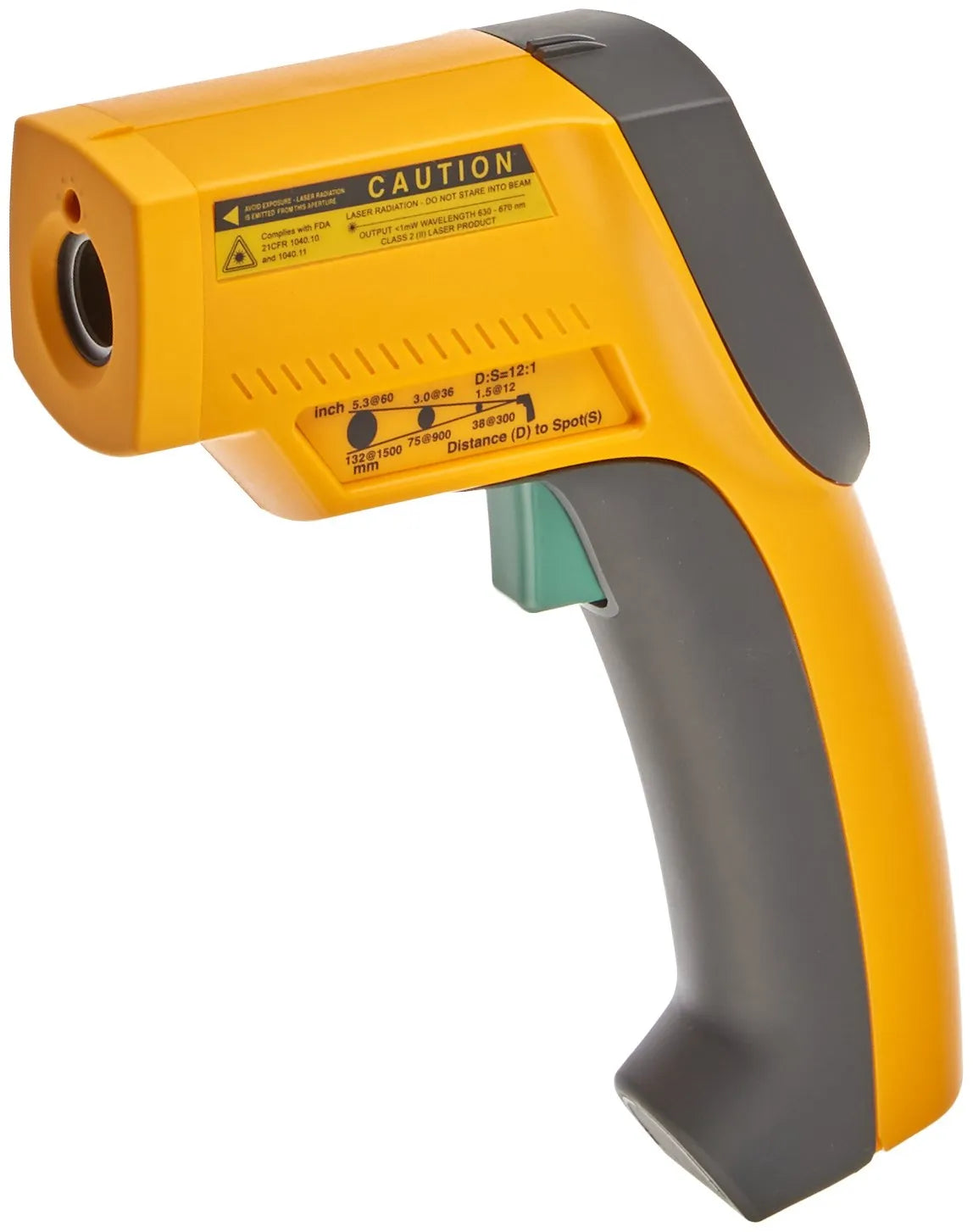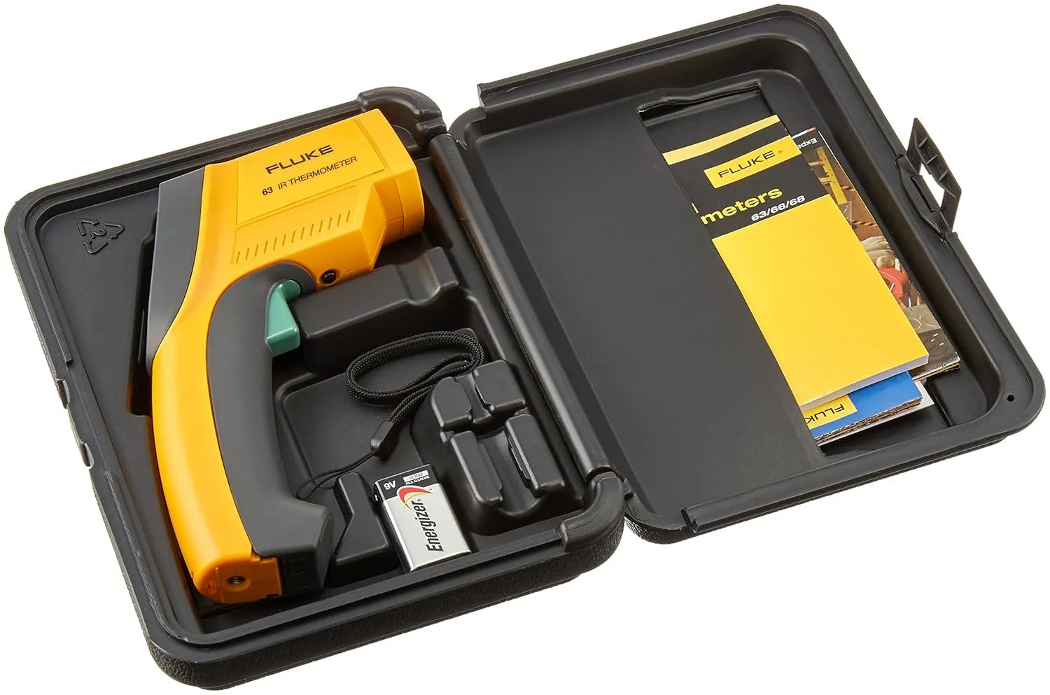 The Fluke 63 Infrared Thermometer offers non-contact temperature measurements from -32°C to 535°C with a 12:1 distance-to-spot ratio, ideal for professionals monitoring electrical systems and diagnosing HVAC issues.