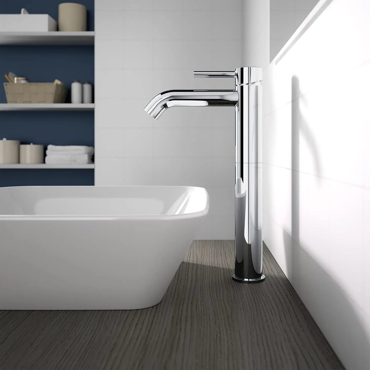 With a sleek cylindrical design and a height of 321 mm, this basin mixer is ideal for countertop and vessel washbasins requiring a higher tap profile. The 150 mm spout projection ensures comfortable water reach and usability.