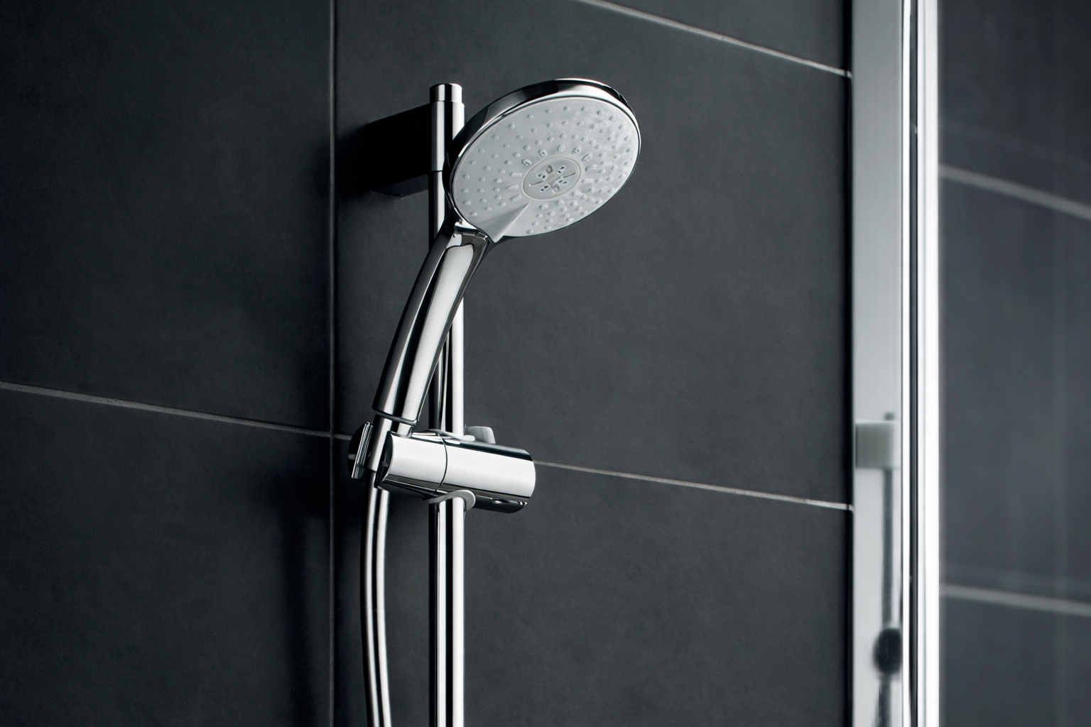 The kit includes a handspray, shower hose, sliding rail set, and concealed fixing system for a clean installation appearance. Built from high-quality metal components with SmartShine chrome plating, it offers long-lasting brilliance and corrosion resistance.