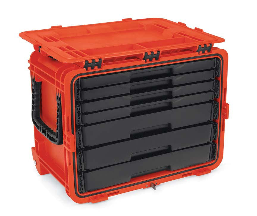 صندوق أدوات متين مع 7 أدراج، مقاوم للماء، ومحمول.