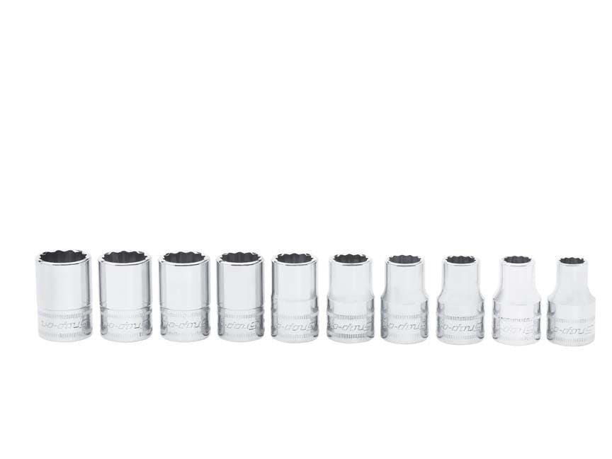 مجموعة من 10 قطع مع مقابس Flank Drive® بـ 12 نقطة لزيادة القبضة والمتانة.