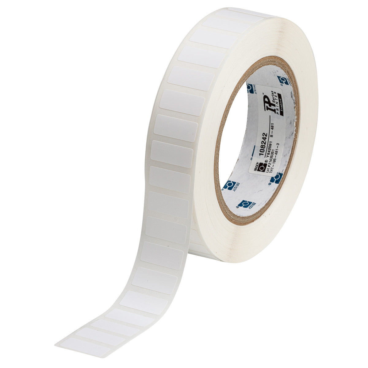 ملصقات بيضاء بوليستر مقاومة للمواد الكيميائية للشرائح نواة 76.20 ملم لـ طابعات بريدي 22.86×9.53 ملم | 108242