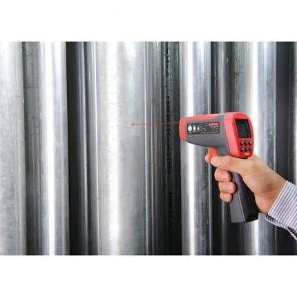 يُعد بيها-أمبروب IR-750-EUR مقياس حرارة بالأشعة تحت الحمراء عالي الأداء مصمم لقياس درجات الحرارة بدون تلامس في تطبيقات HVAC/R، والصيانة الكهربائية والصناعية، وصيانة السيارات، بالإضافة إلى مراقبة الجودة والوقاية من الحرائق. يتميز بنسبة مسافة إلى البقعة 50:1، ونطاق قياس من -50° إلى 1550° درجة مئوية، مع استجابة سريعة ودقة عالية.