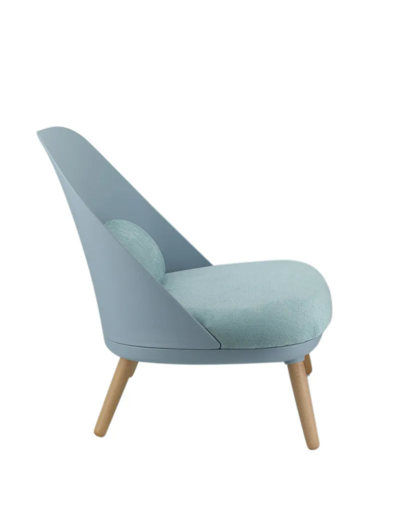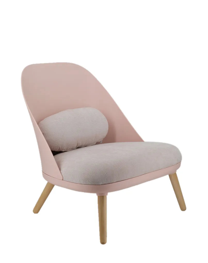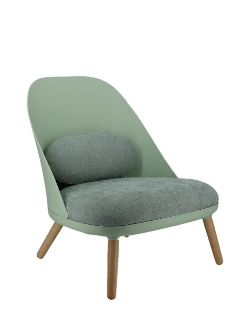 كرسي HIGHMOON Moodie الفاخر بتصميم إطار بولي‑بروبيلين، أرجل خشب صلب، مقعد وظهر مبطّنان بقماش، مناسب لصالات الاسترخاء والمنازل.