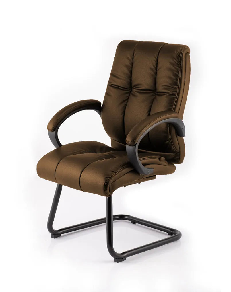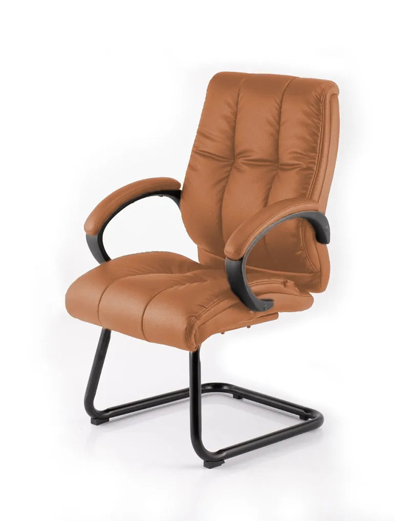 كرسي HIGHMOON Ras للزوار بتصميم ظهر منخفض، تنجيد جلد صناعي إيطالي، ذراعين مبطنين، قاعدة كانتيلفر أنيقة، متوفر بألوان متعددة.