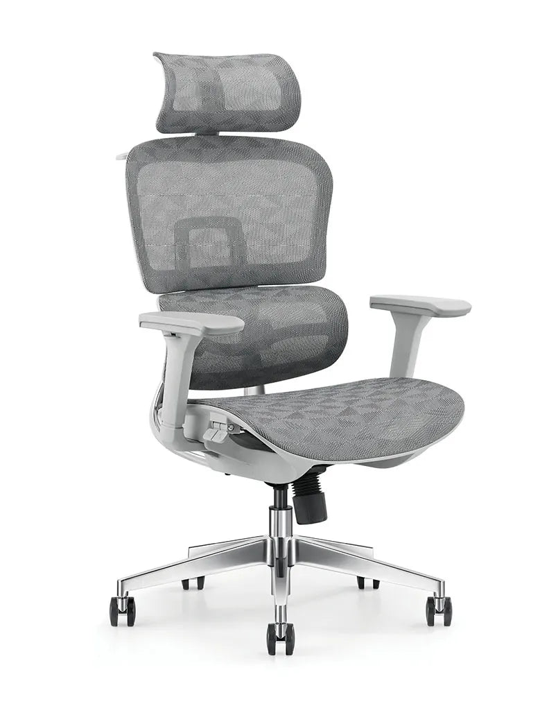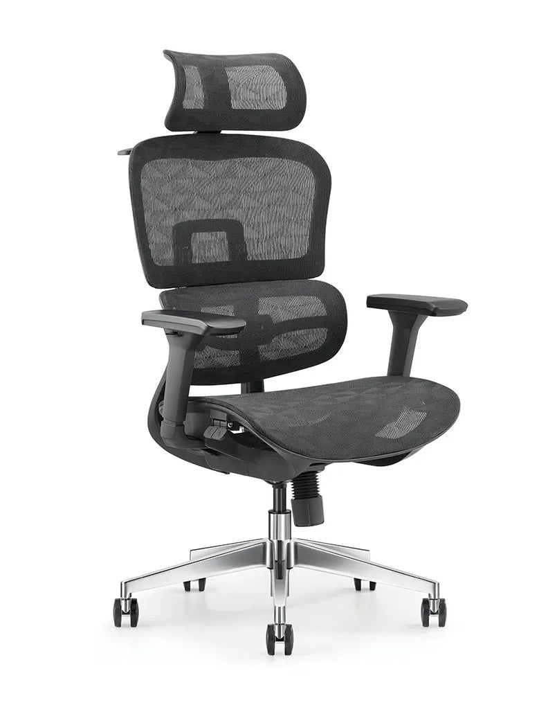 مسند ظهر شبكي ثلاثي التعزيز: مع إطار من الألياف الزجاجية، يضمن دعمًا لأسفل الظهر وتوزيعًا مثاليًا للضغط.