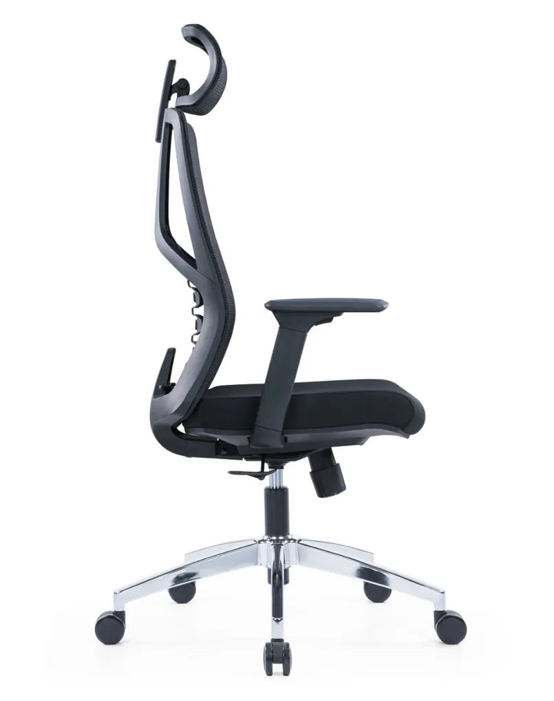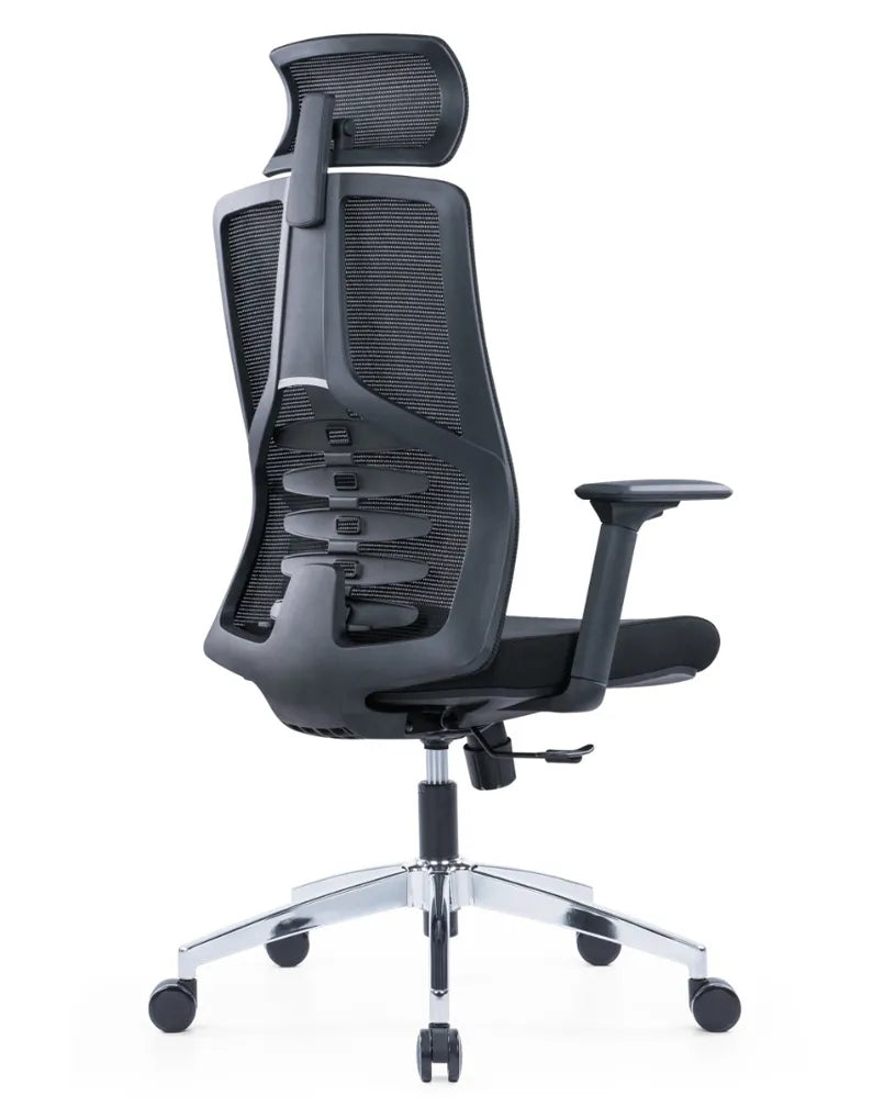 كرسي مكتب تنفيذي مريح بإطار نايلون ألياف زجاجية أسود، مسند رأس دوّار قابل للتعديل، دعم قطني ومسند ذراعين ثنائي الأبعاد—مصمم للراحة الفائقة. اقرأ المزيد