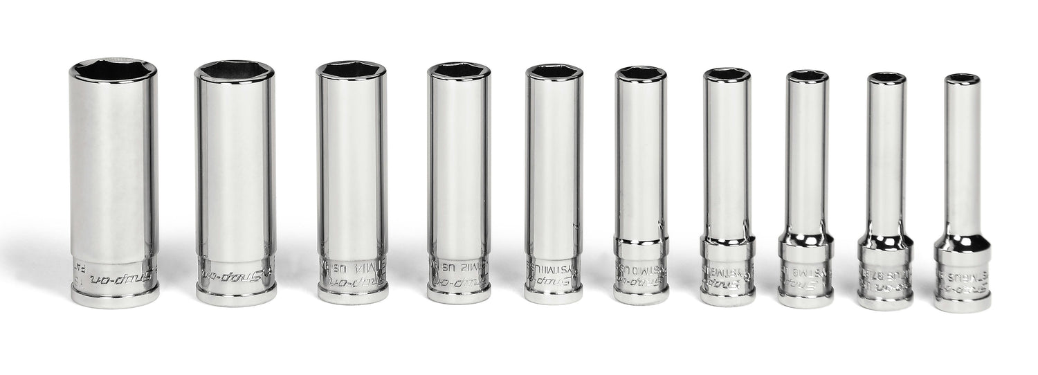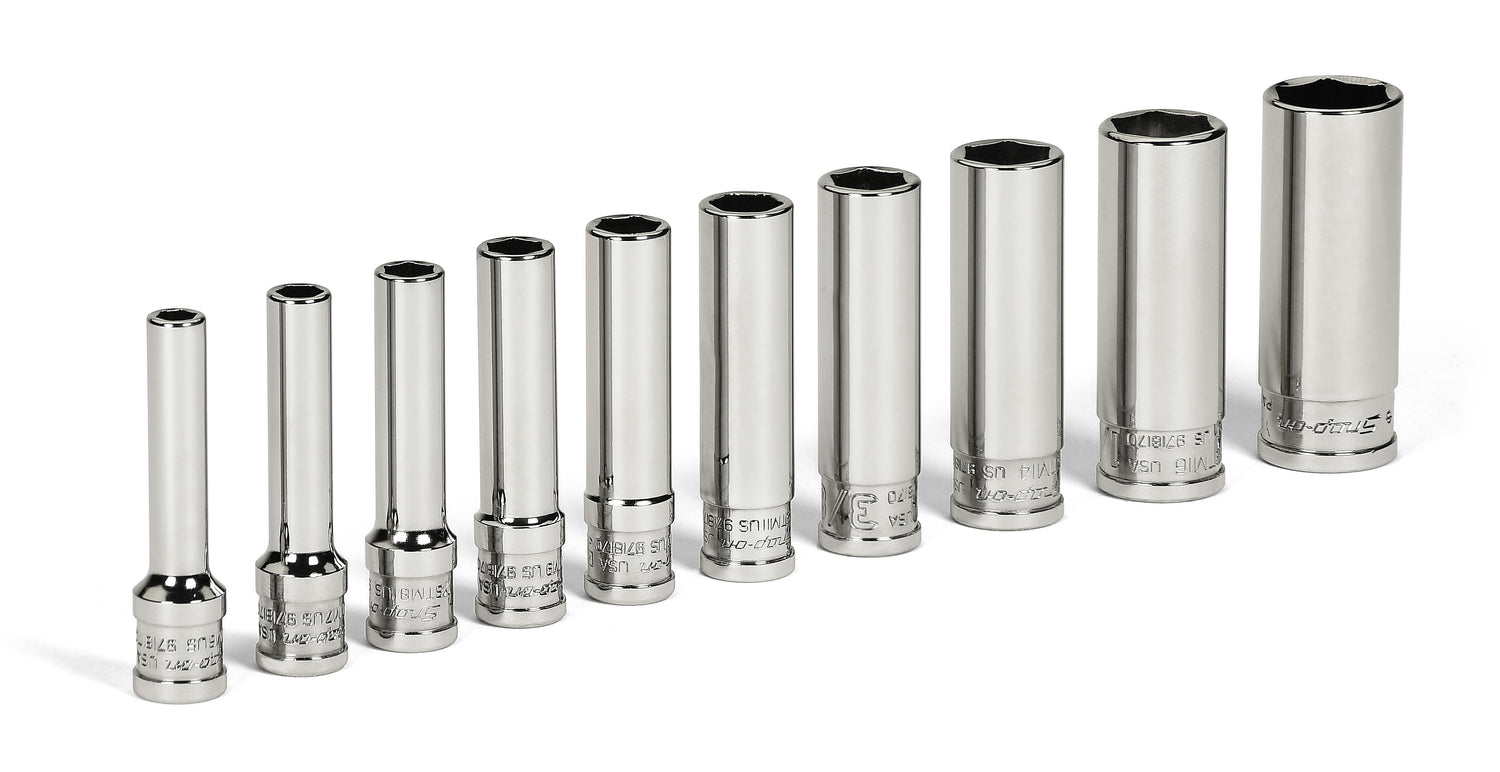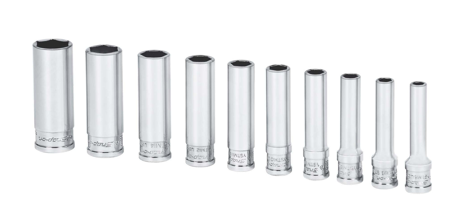 مجموعة مقابس عميقة 10 قطع، 1/4 بوصة، 6 نقاط SAE Flank Drive® (3/16"-9/16")